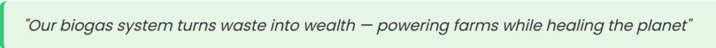 From lighting our barns to boiling 1,00,000+ liters of milk / month, our Biogas plant is the invisible Engine powering a high-performance and Investor-friendly Livestock System