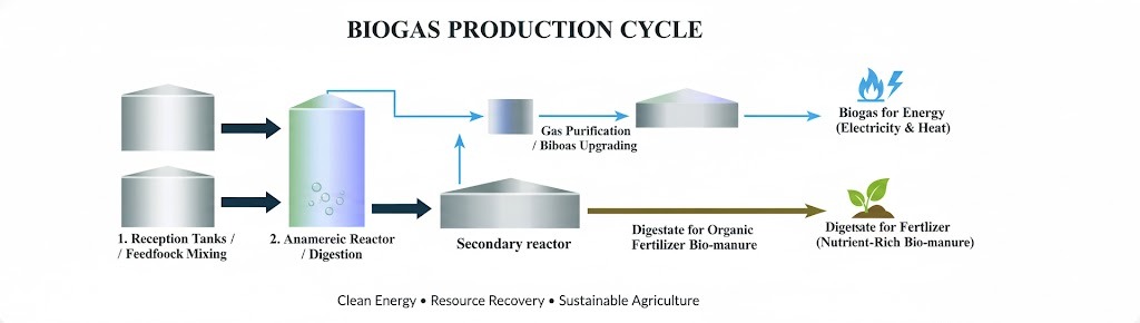 This infrastructure enables continuous production of Biogas, ensuring energy self-reliance and efficient waste management